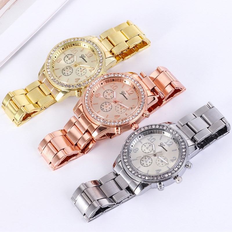 Jam Geneva Wanita Analog Diamond Fashion Casual Lady Wrist Watch Import