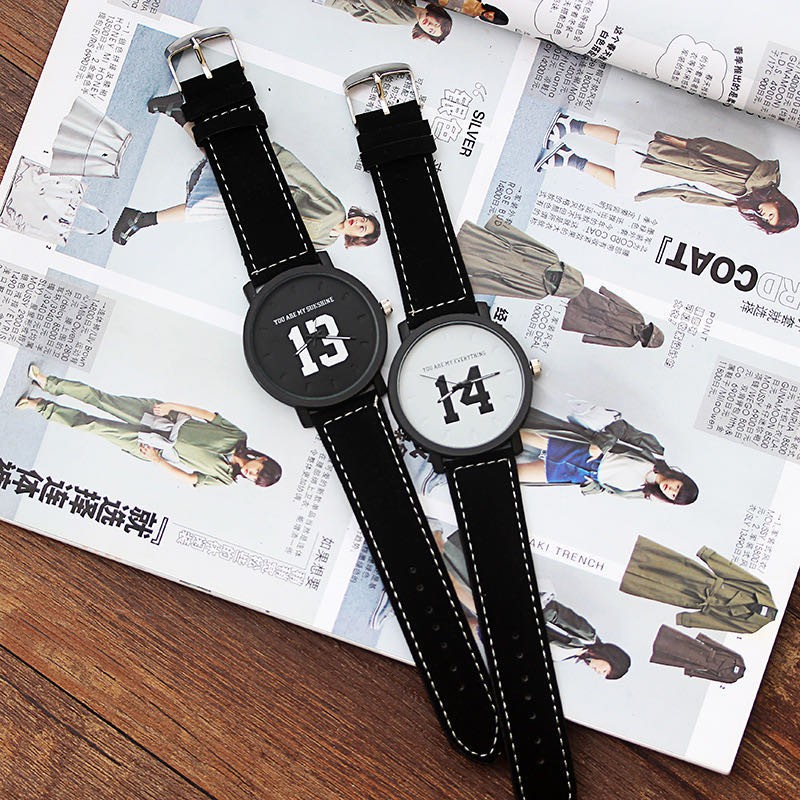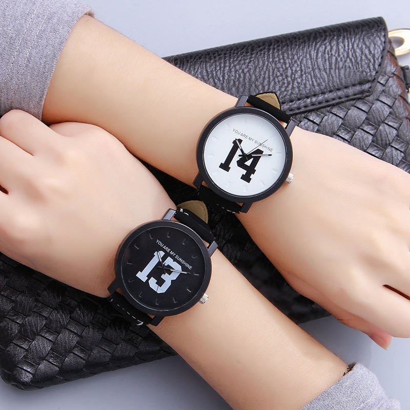 Harga Jam Tangan Nomor 13 & 14 Pasangan Jam Tangan Fashion Hitam Kulit Quartz Jam Tangan Wanita Pria