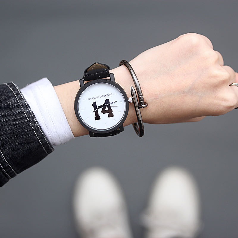 Alasan kenapa harus beli Jam Tangan Nomor 13 & 14 Pasangan Jam Tangan Fashion Hitam Kulit Quartz Jam Tangan Wanita Pria sekarang