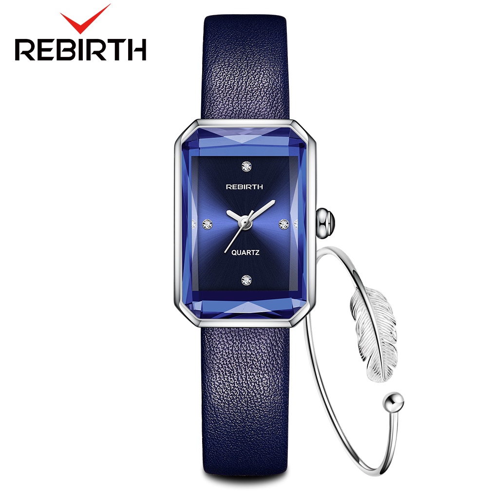 REBIRTH Jam Tangan Wanita Mode Santai Tali Kulit Tahan Air Kuarsa Jam Tangan Cewek