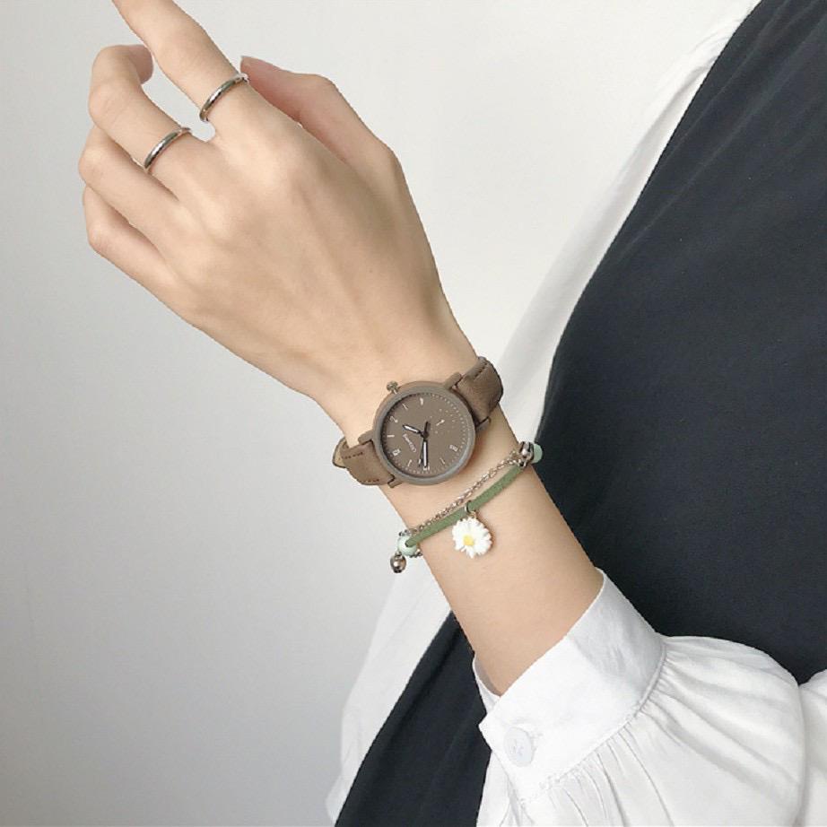Jam Tangan Quartz Strap PU Analog Casual Gaya Retro Untuk Wanita Watch Korean Fashion