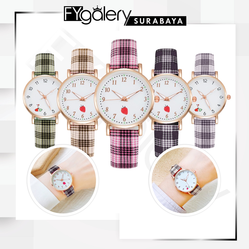 Harga FYGALERYSURABAYA J185 Jam Tangan Analog Watch Wanita Strap Kotak Kotak Korean Style