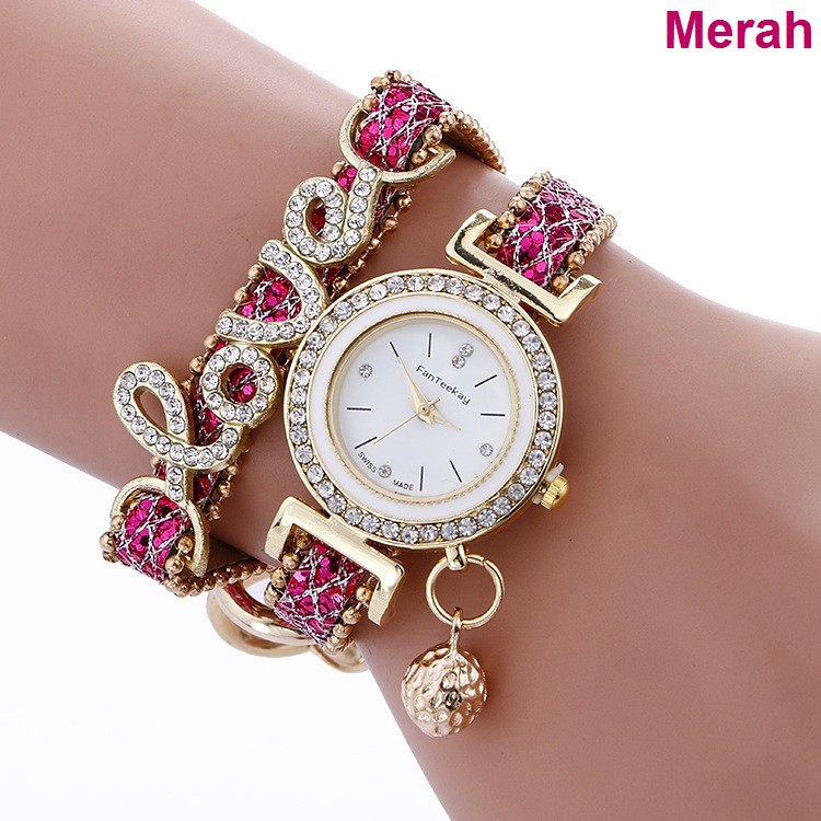 Harga Jam Tangan Aksesoris Cinta Cewe Wanita Gadis Stainless Merah Muda Tahan Air Emas Silver Biru