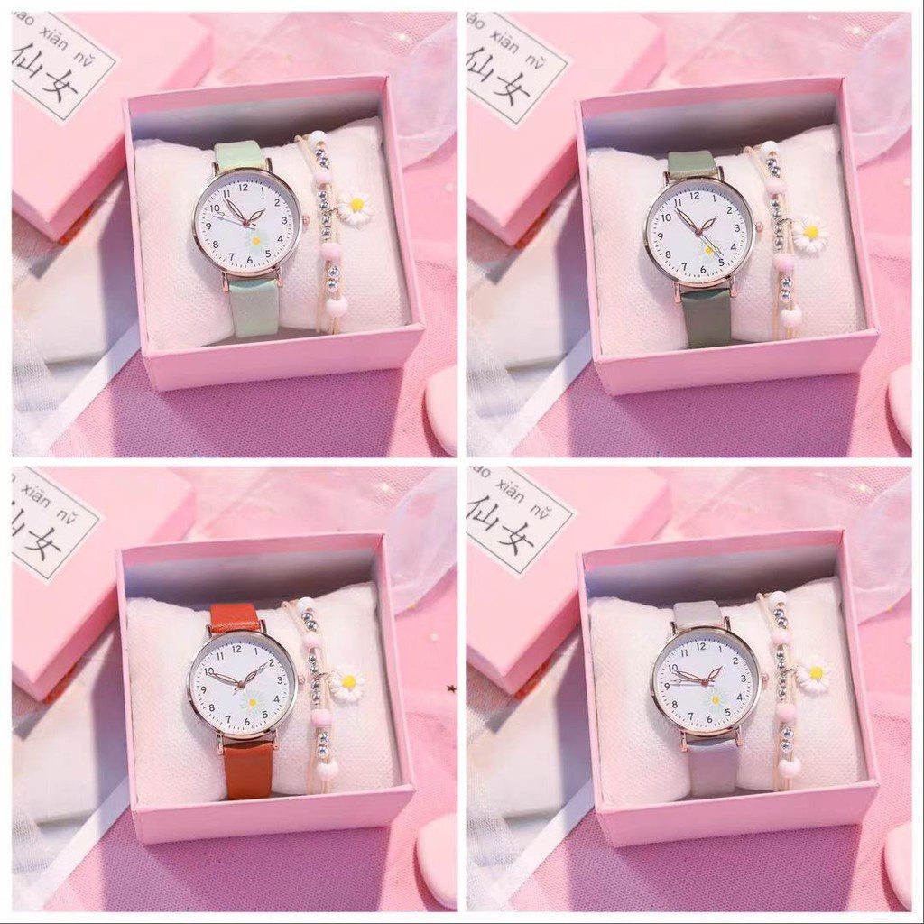 Kelebihan - Kelebihan membeli Jam Tangan bunga DAISY KALEB Gaya Korea Strap PU Leather Polos Analog Quartz Fashion Wanita Korean Watch Casual di Toko ini