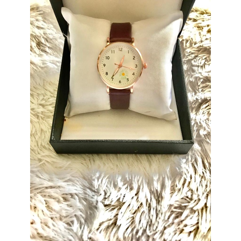 Kekurangan - Kekurangan membeli Jam Tangan bunga DAISY KALEB Gaya Korea Strap PU Leather Polos Analog Quartz Fashion Wanita Korean Watch Casual di Toko ini