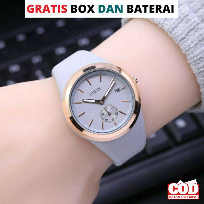 Jam Tangan Cewek Rubber Fitur Tanggal Detik Bawah Berfungsi Murah Bergaransi