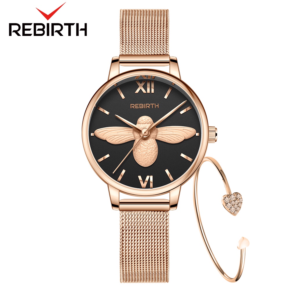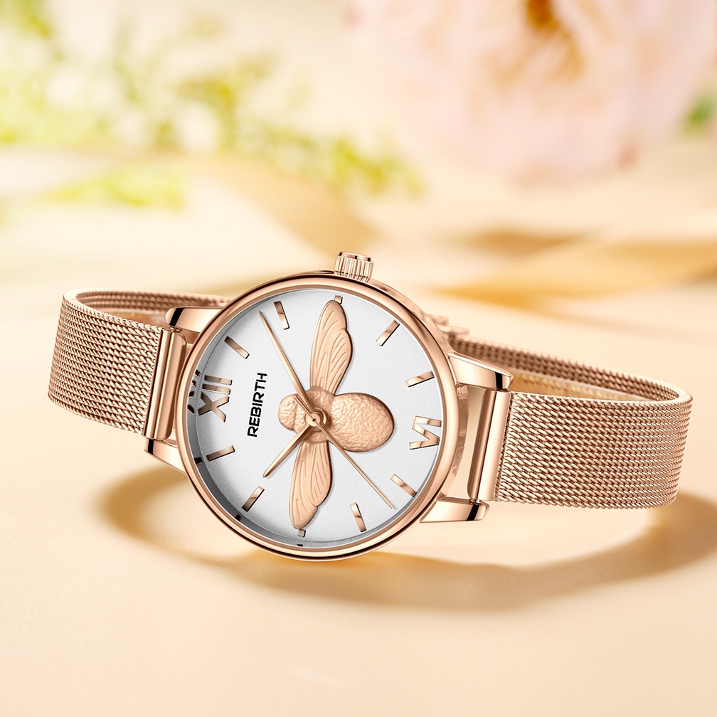 Harga REBIRTH Jam Tangan Wanita 3D Lebah Dial Mode Santai Kuarsa Tahan Air Tali Jala Jam Tangan Cewek