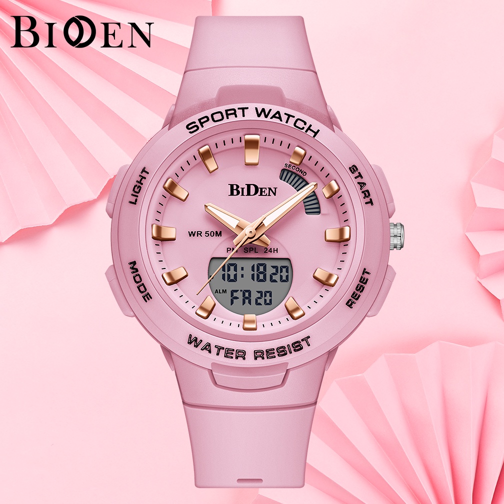 BIDEN Jam Tangan Wanita Santai Olahraga Korea Style Digital Tahan Air Tali Silikon Jam Tangan Cewek